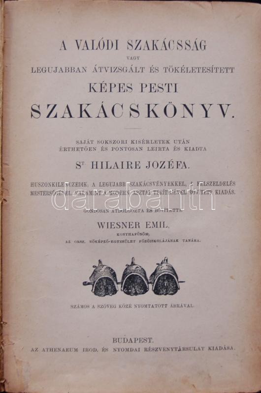 Hilaire, Jozéfa: A valódi szakácsság vagy legujabban átvizsgált és tökéletesitett képes pesti szakácskönyv... a legujabb szakácsvényekkel, a felszeldelés mesterségével, valamint a modern asztal teritésével bővitett kiadás. Gondosan átdolgozta és bővítette Wiesner Emil.