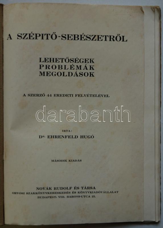 ~1930 Dr. Ehrenfeld Hugó: A szépítősebészetről, Bp., Novák Rudolf és T... https://www.darabanth.com/de/165-Fernauktion/165.0/Andere-Sammelgebiete/Bucher-Wissenschaften~900041/7E1930-Dr-Ehrenfeld-Hugo-A-szepitosebeszetrol-Bp-Novak-Rudolf-es-Tarsa-papirkotes-~II546021