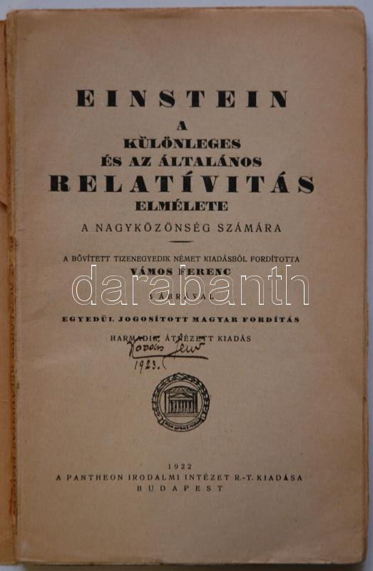 Einstein: A különleges és az általános relatívitás elmélete a nagyközö... https://www.darabanth.com/de/165-Fernauktion/165.0/Andere-Sammelgebiete/Bucher-Wissenschaften~900041/Einstein-A-kulonleges-es-az-altalanos-relativitas-elmelete-a-nagykozonseg-szamara-Bp~II546222