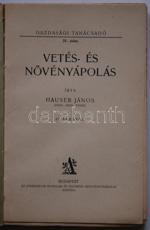 Hauser János: Vetés és növényápolás. Bp., é.n. Athenaeum https://www.darabanth.com/de/165-Fernauktion/165.0/Andere-Sammelgebiete/Bucher-Wissenschaften~900041/Hauser-Janos-Vetes-es-novenyapolas-Bp-en-Athenaeum~II546158