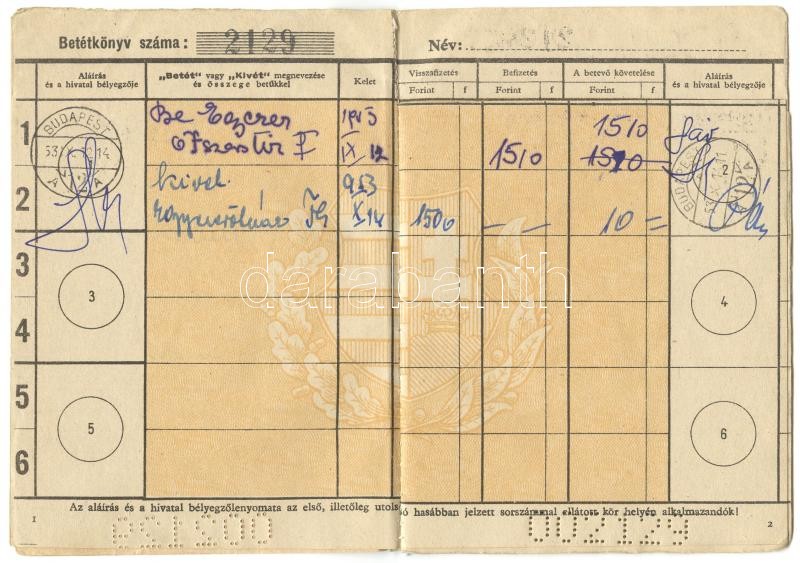 1953 Magyar Postatakarék-pénztár Kossuth címeres betétkönyve https://www.darabanth.com/de/165-Fernauktion/165.0/Andere-Sammelgebiete/Dokument~900014/1953-Magyar-Postatakarek-penztar-Kossuth-cimeres-betetkonyve~II533751