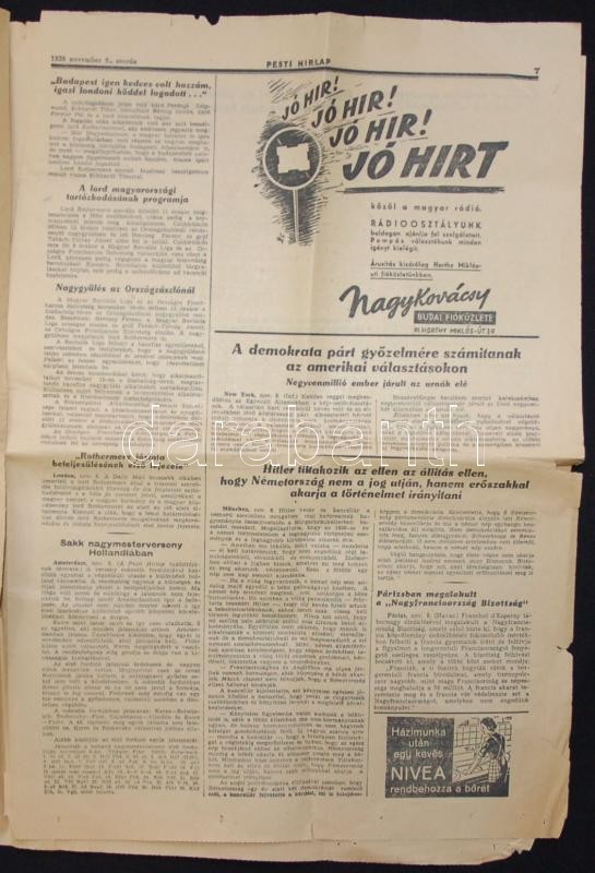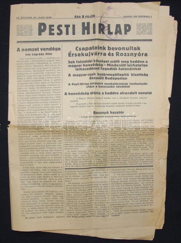 1938 A Pesti Hírlap nov. 9. száma a Felvidéki bevonulás híreivel https://www.darabanth.com/de/165-Fernauktion/165.0/Andere-Sammelgebiete/Drucksachen~900025/1938-A-Pesti-Hirlap-nov-9-szama-a-Felvideki-bevonulas-hireivel~II548502