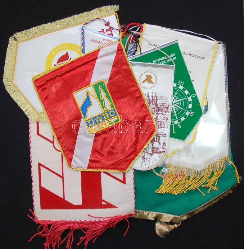 Beschreibung: 1970-1980 10db klf asztali zászló magyar és külföldi természetbarát és turistaegyesületektől, ill. -szövetségektől