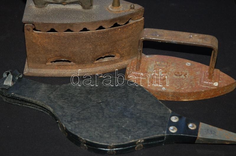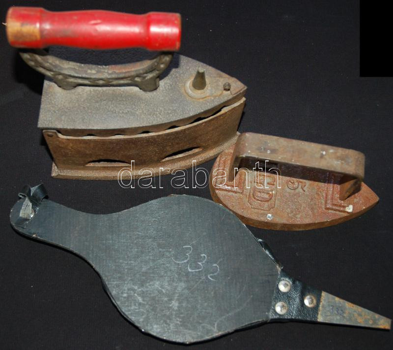 Kis bolha tétel: régi szenes vasaló, régi öntöttvas úti vasaló, bőr-fa... https://www.darabanth.com/de/165-Fernauktion/165.0/Andere-Sammelgebiete/Flohmarkt~900011/Kis-bolha-tetel-regi-szenes-vasalo-regi-ontottvas-uti-vasalo-bor-fa-fujtato-szegecsekk~II546826