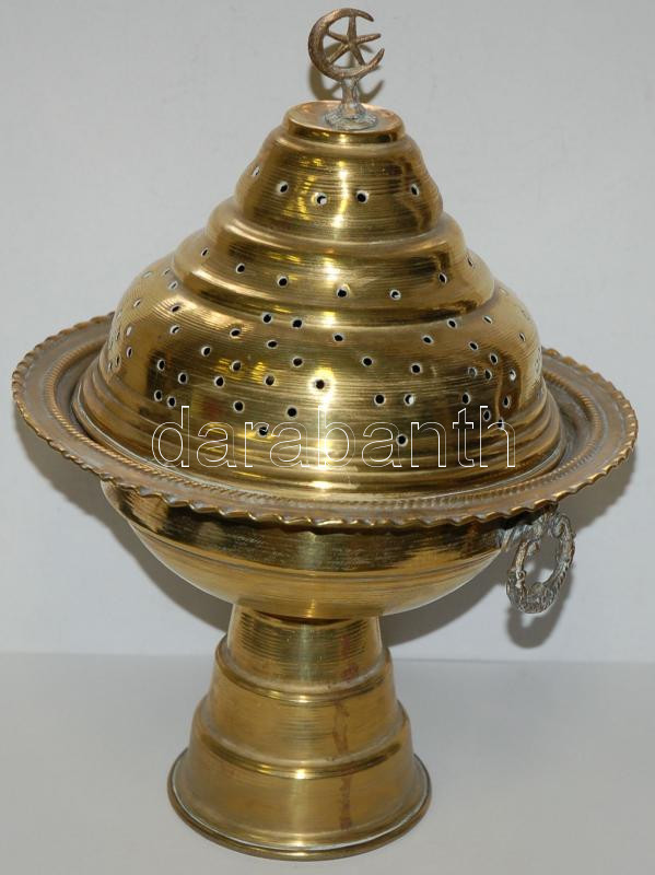 Large Turkish brass censer 33cm, d: 24... https://www.darabanth.com/de/165-Fernauktion/165.0/Andere-Sammelgebiete/Flohmarkt~900011/Nagymeretu-torok-rez-fustolo--3Cbr3ELarge-Turkish-brass-censer-33cm-d-24cm~II547004