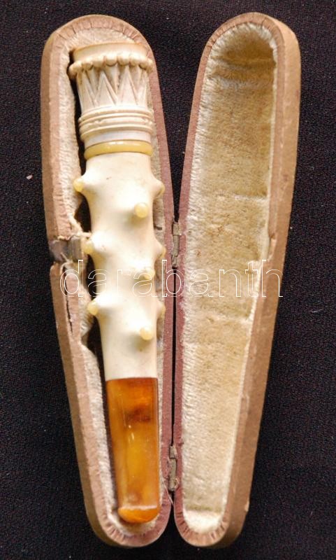 Régi csontszipka bakelit díszítéssel és borostyán véggel saját tokjába... https://www.darabanth.com/de/165-Fernauktion/165.0/Andere-Sammelgebiete/Flohmarkt~900011/Regi-csontszipka-bakelit-diszitessel-es-borostyan-veggel-sajat-tokjaban--3Cbr3EVintage-ciga~II533940