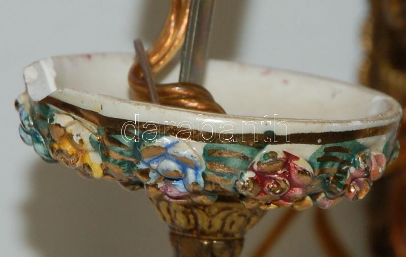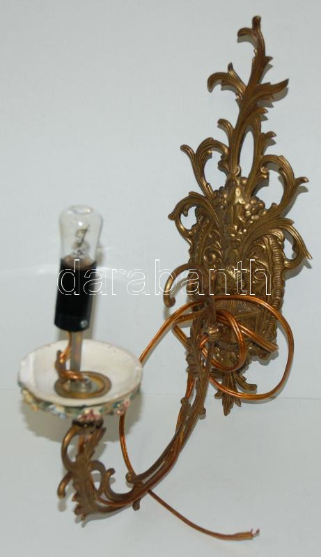 Beschreibung: Szecessziós réz falilámpa kézzel festett, aranyozott porcelán lámpabura-foglalattal /