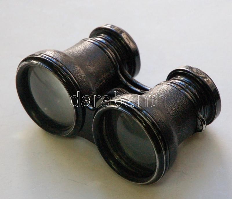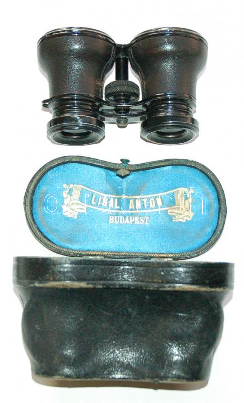 cca 1900 Libal Anton Budapest: bőr borítású színházi látcső saját bőr tokjában, javításra szorul /