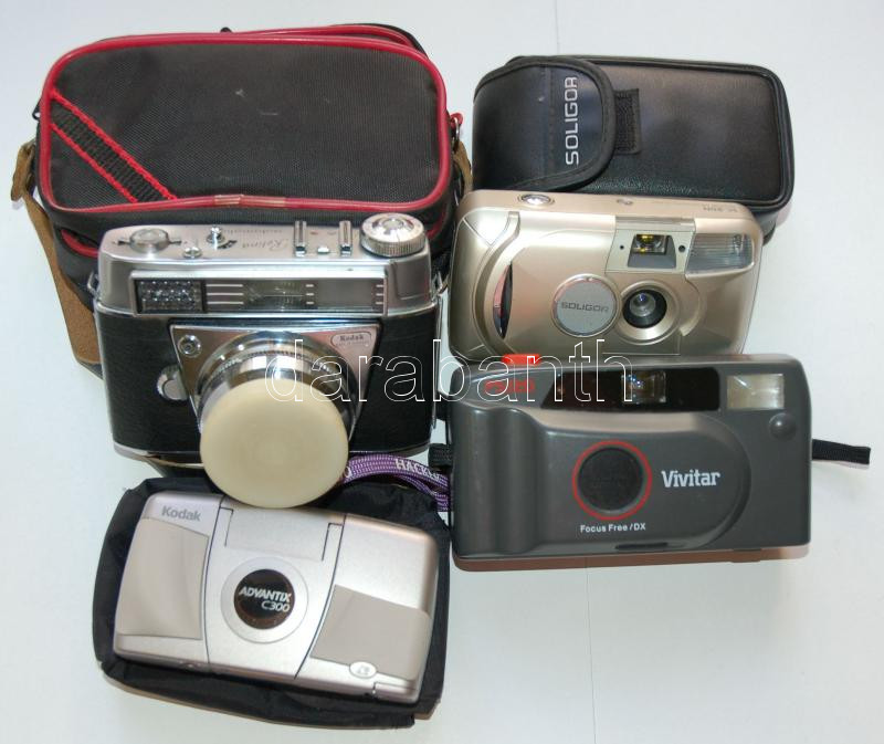 Beschreibung: 4db klf fényképezőgép, mind eredeti tokjával