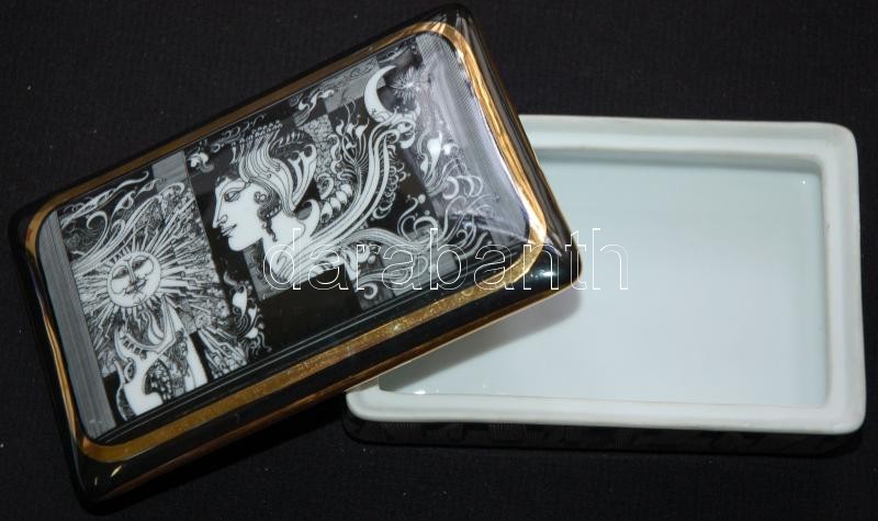Szász Endre által tervezett Hollóházi jelzett porcelán ékszeres doboz ...