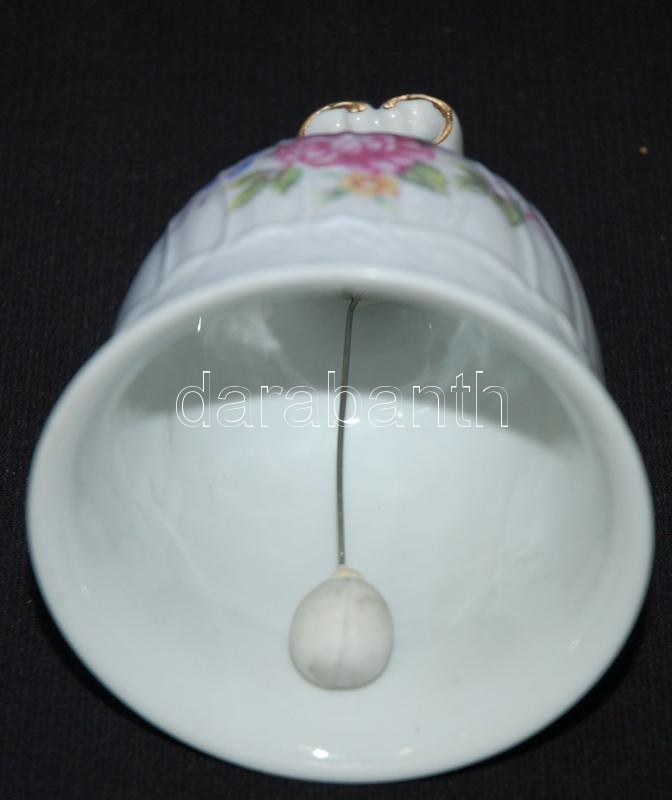 Beschreibung: Virágokkal díszített szolidan aranyozott jelzett Hollóházi porcelán csengő /