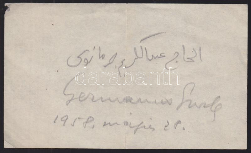 1958 Germanus Gyula (1884-1979) nemzetközi hírű orientalista, nyelvész... https://www.darabanth.com/de/165-Fernauktion/165.0/Andere-Sammelgebiete/Signatur~900016/1958-Germanus-Gyula-1884-1979-nemzetkozi-hiru-orientalista-nyelvesz-kulturtortenesz-ala~II546223