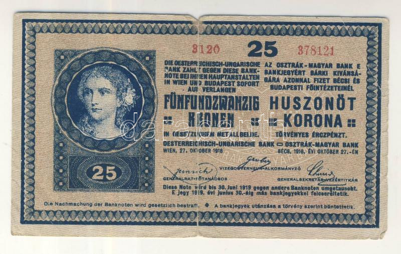 1918. 25K hullámos hátlap, "A 3120" sorozat "III. Hadtest Katonai Szer... https://www.darabanth.com/de/165-Fernauktion/165.0/Numismatik/Ungarische-banknoten~1400102/1918-25K-hullamos-hatlap-A-3120-sorozat-III-Hadtest-Katonai-Szervezo-Csoportja-nem-hivatal~II534347