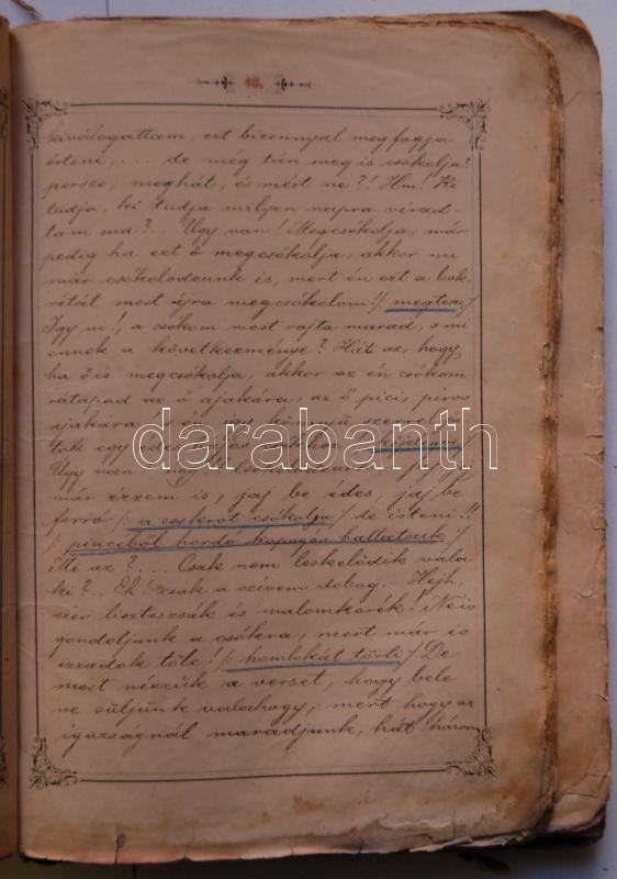 Beschreibung: Beöthy Imre: Az ördög útja. Zene: Kersch Ferencz. Kéziratos színdarab Blaha Lujzának ajánlva, kézzel festett díszes címlappal és fejezetcímekkel, ceruzás bejegyzésekkel, rozoga bársonyborítású füzetben, viseltes állapotban