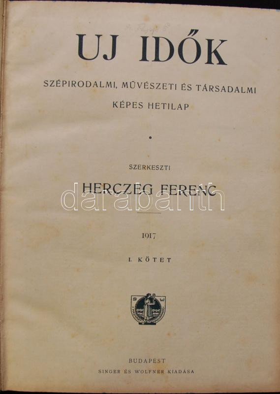 Új Idők: Szépirodalmi, művészeti és társadalmi képes hetilap. Szerk. Herczeg Ferenc. 1917. fél évf. (XXIII.) egybekötve. Félvászon kötésben rengeteg illusztrációval és művészeti reprodukcióval