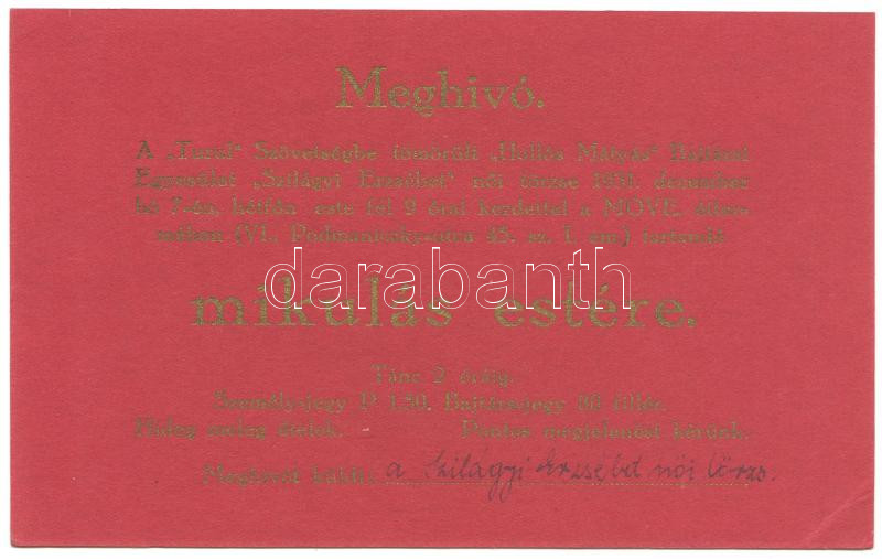 Beschreibung: 1931 Meghívó a Turul szövetség Mikulás esélyére