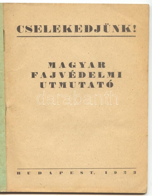 Bp. 1923. A Cél, 62p. https://www.darabanth.com/de/166-Fernauktion/166.0/Andere-Sammelgebiete/Drucksachen~500023/Cselekedjunk-Magyar-fajvedelmi-utmutato-3Cbr3EBp-1923-A-Cel-62p~II536099