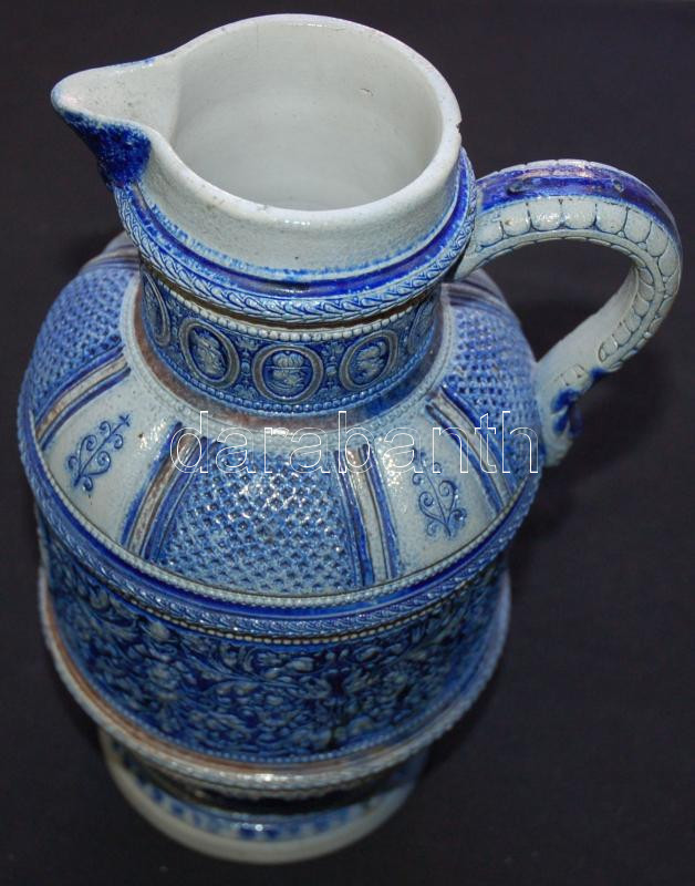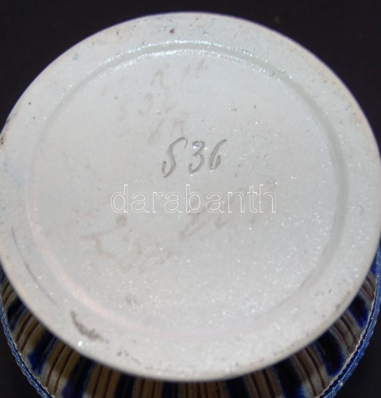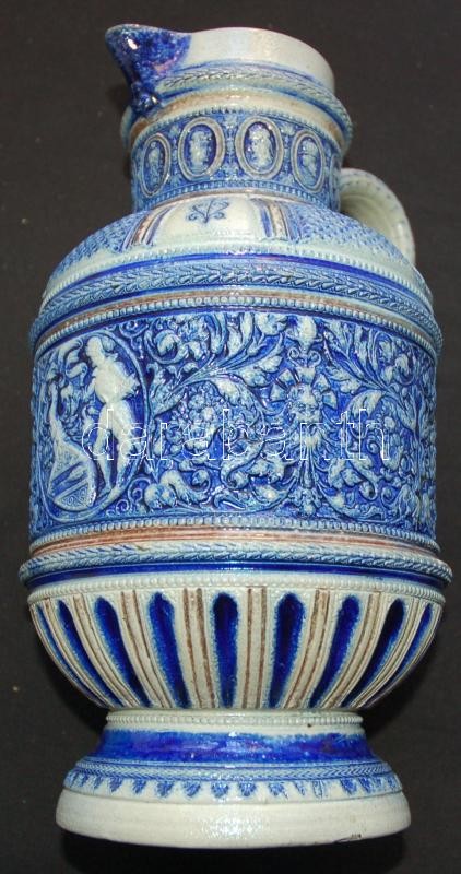 Sorszámozott, kézzel festett, arabeszk díszítésű régi vizeskorsó (oldalán kis lepattogzás) /