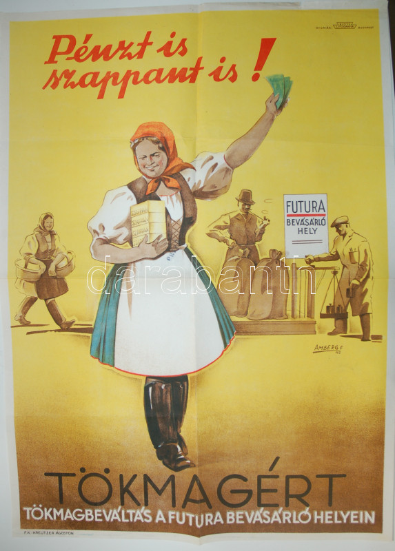1935 Futura tökmagbeváltás eredeti reklámplakát illetékbélyeggel. Kőny... https://www.darabanth.com/de/166-Fernauktion/166.0/Andere-Sammelgebiete/Werbungen~500016/1935-Futura-tokmagbevaltas-eredeti-reklamplakat-illetekbelyeggel-Konyomat-Klosz-nyomda-42~II524452