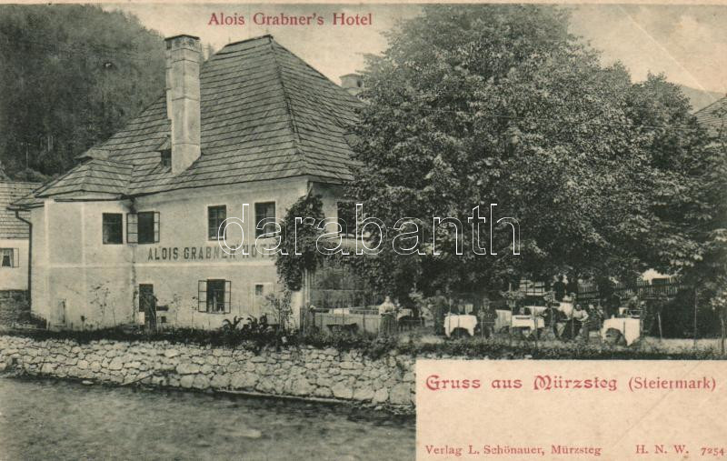 Mürzsteg Hotel Alois Grabner https://www.darabanth.com/de/166-Fernauktion/166.0/Ansichtskarten/Osterreich~500057/Murzsteg-Hotel-Alois-Grabner~II549211