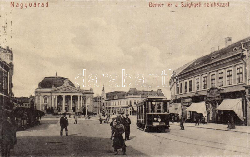 Nagyvárad Bémer square, Szigligeti theatre, pharmacy, tram https://www.darabanth.com/de/166-Fernauktion/166.0/Ansichtskarten/Siebenburgen~500044/Nagyvarad-Bemer-square-Szigligeti-theatre-pharmacy-tram~II550604