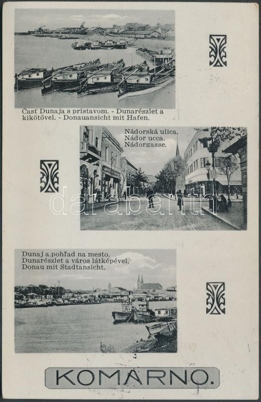 Komárom Nádor street, port, ship, vissza So.Stpl https://www.darabanth.com/de/166-Fernauktion/166.0/Ansichtskarten/Slowakei~500046/Komarom-Nador-street-port-ship-vissza-SoStpl~II523851