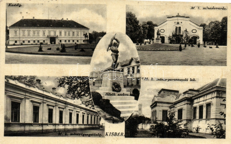 Kisbér, Hősök szobra, Ménes-igazgatóság, parancsnokság és lovardalovar... https://www.darabanth.com/de/166-Fernauktion/166.0/Ansichtskarten/Ungarn~500043/Kisber-Hosok-szobra-Menes-igazgatosag-parancsnoksag-es-lovardalovarda-vagott-cut~II504374