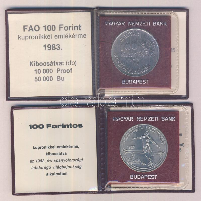 Beschreibung: 1982. 100Ft "Labdarúgó VB" T:BU Eredeti tokban, tanúsítvánnyal! + 1983. 100Ft "FAO" T:BU Eredeti tokban, tanúsítvánnyal!