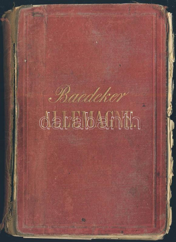 Baedeker's Reisehandbücher - Allemagne, németországi útikönyv francia nyelven, benne Magyarország is, Karl Baedeker kiadása, Leipzig, 1878, rengeteg kihajtható térképpel, kiadói egészvászon kötésben, megviselt állapotban
