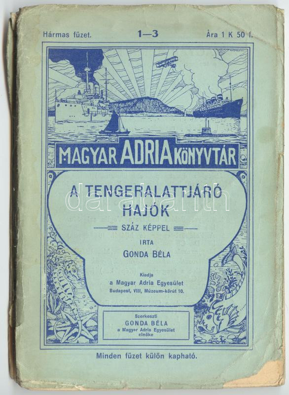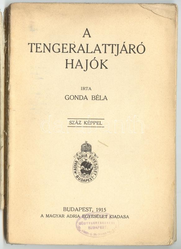Gonda Béla: A tengeralattjáró hajók száz képpel. Magyar Adria Könyvtár... https://www.darabanth.com/de/167-Fernauktion/167.0/Andere-Sammelgebiete/Bucher-Militaria~500045/Gonda-Bela-A-tengeralattjaro-hajok-szaz-keppel-Magyar-Adria-Konyvtar-Bp-1915-136p-sz~II560092