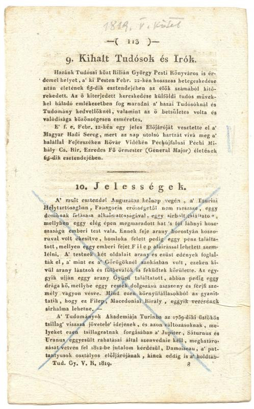1819 Bérekesztése a honnyi Mívészekről és az ő Míveikről való tavali Tudósításoknak, Tudományos Gyűjtemény, 1819/V, pp114-118. Cikktöredék (!) korabeli, ill. híres magyar művészek teljes, abc-rendű listájával