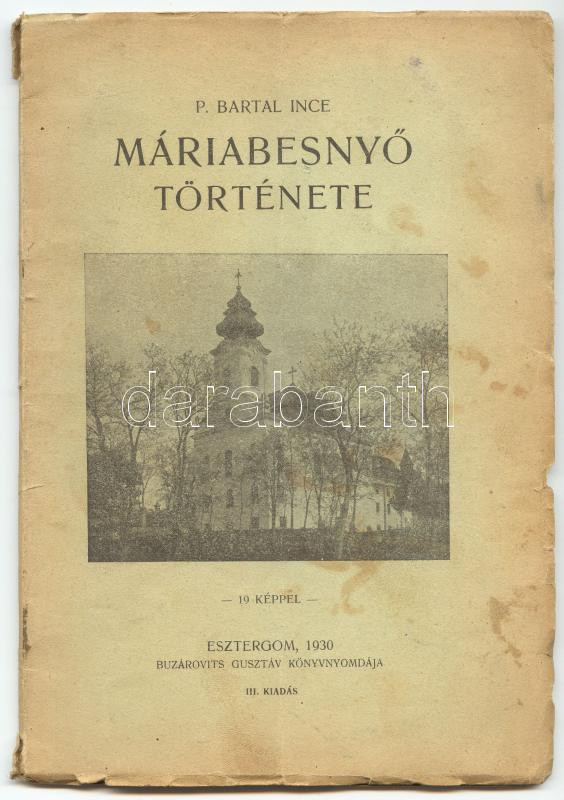 Bartal Ince: Máriabesnyő története. Esztergom, 1930, Buzárovits 90p. h... https://www.darabanth.com/de/167-Fernauktion/167.0/Andere-Sammelgebiete/Drucksachen~500041/Bartal-Ince-Mariabesnyo-tortenete-Esztergom-1930-Buzarovits-90p-hajtott~II546827