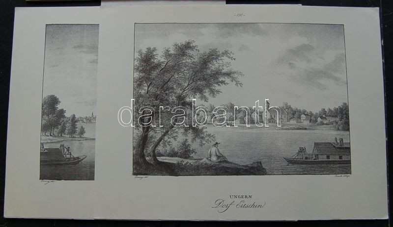 Beschreibung: XIX. századi magyar városokat ábrázoló metszetek reprodukciója : Dévény, Battonya, Pentele, Dunavecse, Apostag, Ercsi (47x35 cm)