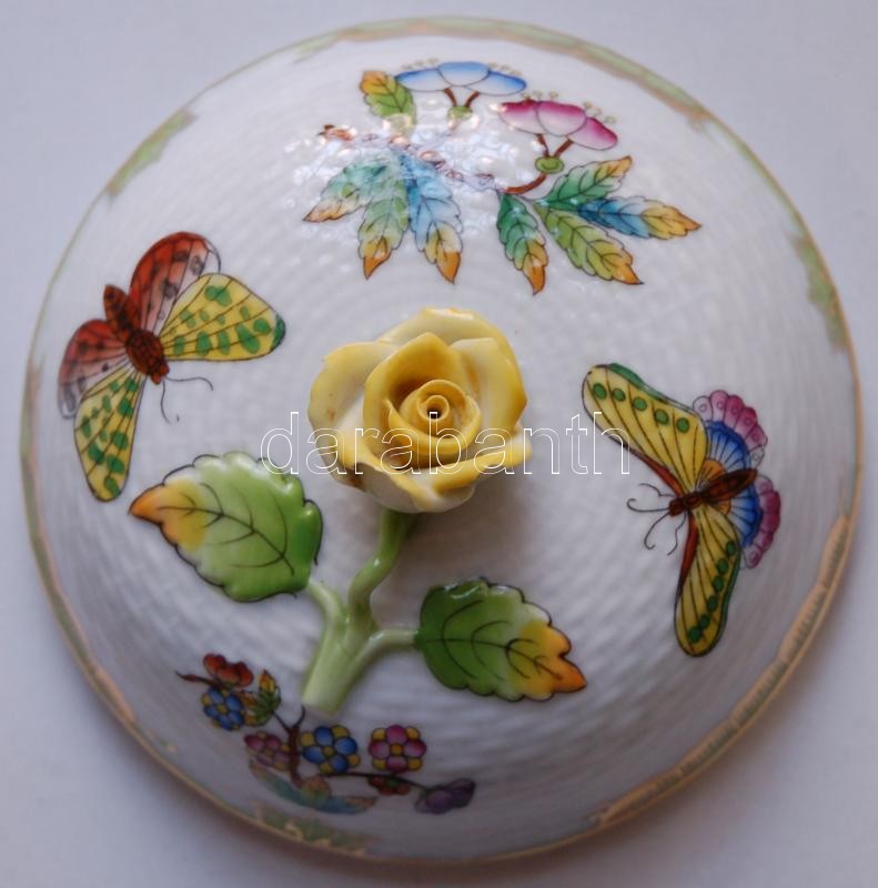 Kézzel festett Victoria avec bord en or mintás jelzett Herendi fonott porcelán bonbonier rózsa alakú fogantyúval hibátlan állapotban /
