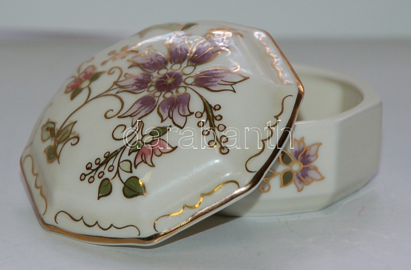 Kézzel festett sorszámozott virágokkal díszített Zsolnay porcelán bonb... https://www.darabanth.com/de/167-Fernauktion/167.0/Andere-Sammelgebiete/Porzellan~500023/Kezzel-festett-sorszamozott-viragokkal-diszitett-Zsolnay-porcelan-bonbonier-hibatlan-allapot~II510892