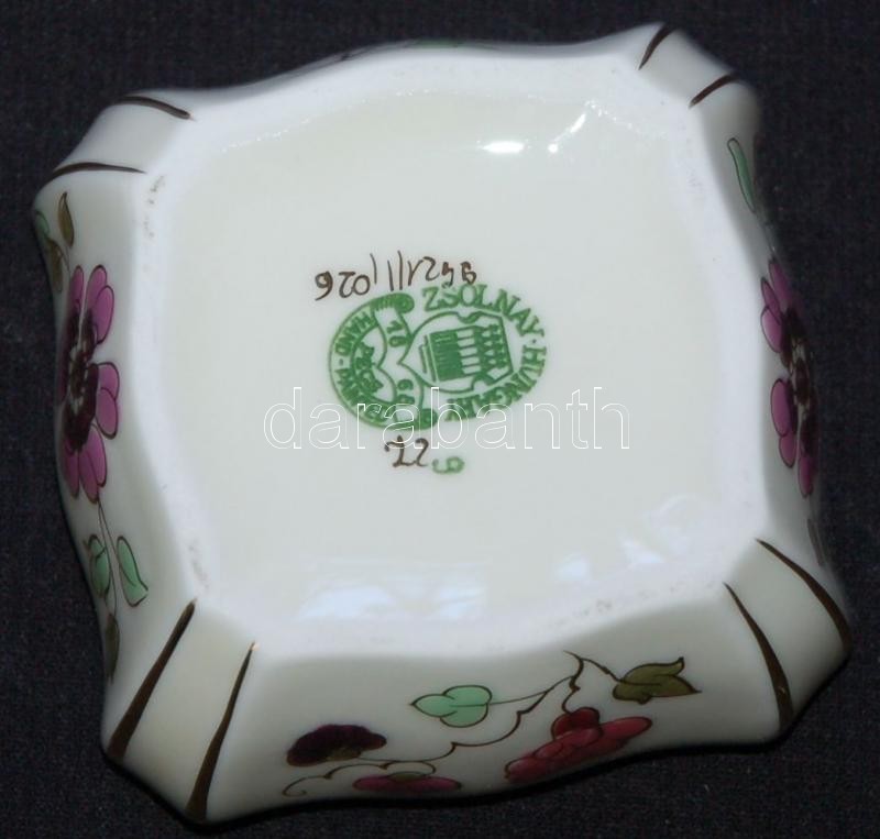 Beschreibung: Kézzel festett sorszámozott virágokkal díszített jelzett Zsolnay porcelán bonbonier /