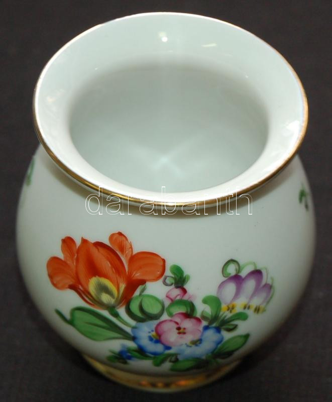 Beschreibung: Kézzel festett, virágmotívumokkal díszített jelzett Herendi porcelán vázácska /