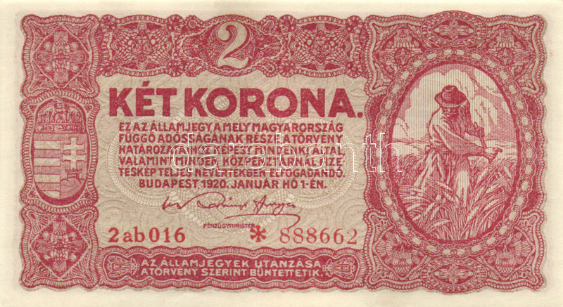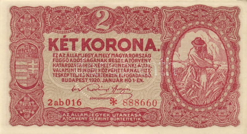 1920. 2K (4x) "2ab *" egymás utáni sorszámmal T:I- https://www.darabanth.com/de/167-Fernauktion/167.0/Numismatik/Ungarische-banknoten~100008/1920-2K-4x-2ab-egymas-utani-sorszammal-TI-~II560660
