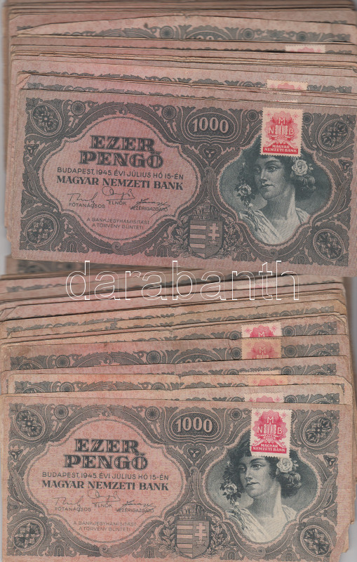 1945. 1000P (80x) bélyeggel és nélküle T:II,III,III- https://www.darabanth.com/de/167-Fernauktion/167.0/Numismatik/Ungarische-banknoten~100008/1945-1000P-80x-belyeggel-es-nelkule-TII-III-III--3Cbr3E~II560598