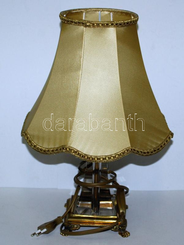 Beschreibung: Neoklasszicista asztali lámpa, dekoratív üvegbetéttel, működőképes, apró hibák az üvegen, hibátlan lámpa ernyőkkel, m: 42cm