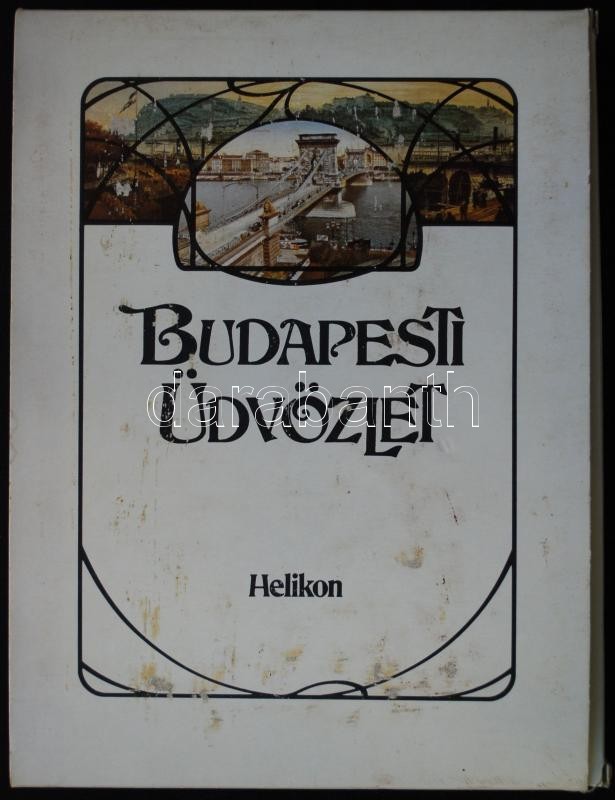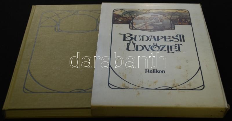 Budapesti üdvözlet. Vál. Kollin Ferenc. Bp., 1983, Helikon. A régi Budapest korabeli képeslapok és reklámok tükrében, Homolka József 1896-ban készült térképének hasonmáskiadásával. Kiadói egészvászon kötésben, dísztokban, jó állapotú könyv. A dísztok sérült (!)