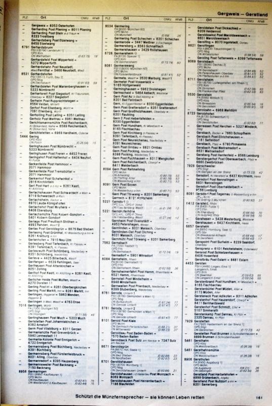 Német irányítószám- és telefonkönyv a 80-as évekből 2 kötetben /
