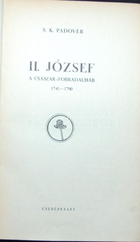 Padover: II. József. Bp., én. Cserépfalvi. 439p. Kiadói, aranyozott, l... https://www.darabanth.com/de/168-Fernauktion/168.0/Andere-Sammelgebiete/Bucher-Geschichte~500016/Padover-II-Jozsef-Bp-en-Cserepfalvi-439p-Kiadoi-aranyozott-laza-es-kopott-felvaszon~II546584