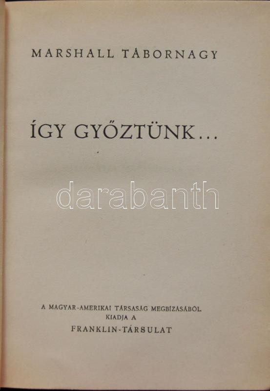 Marshall tábornagy: Így győztünk. Bp., 1945. Franklin. Egészvászon köt... https://www.darabanth.com/de/168-Fernauktion/168.0/Andere-Sammelgebiete/Bucher-Militaria~500020/Marshall-tabornagy-Igy-gyoztunk-Bp-1945-Franklin-Egeszvaszon-kotesben~II546112