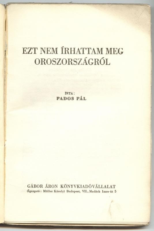 Beschreibung: Pados Tibor: Ezt nem írhattam meg Oroszországból. Bp., 1945. Gábor Áron. 126p.