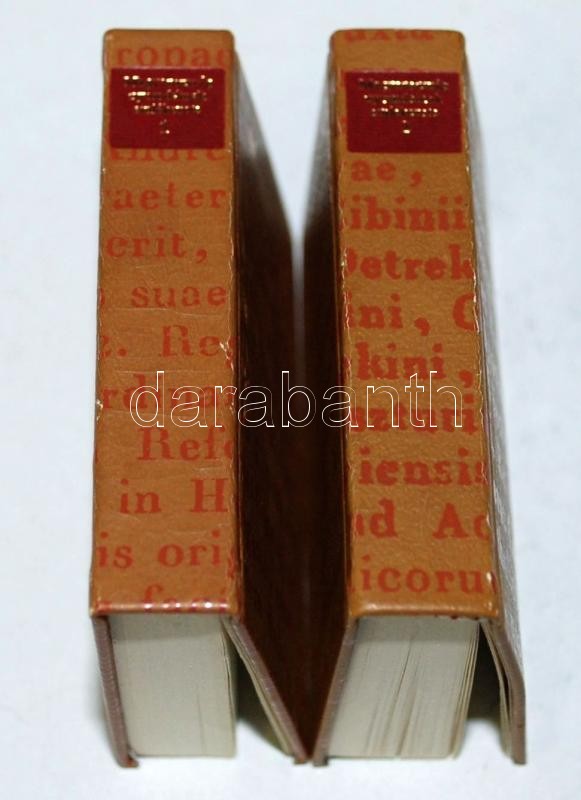 Beschreibung: Minikönyv: Németh János: Magyarország nyomdáinak emlékezete. I.-II. kötet. Zrinyi 1977. Sorszámozott.