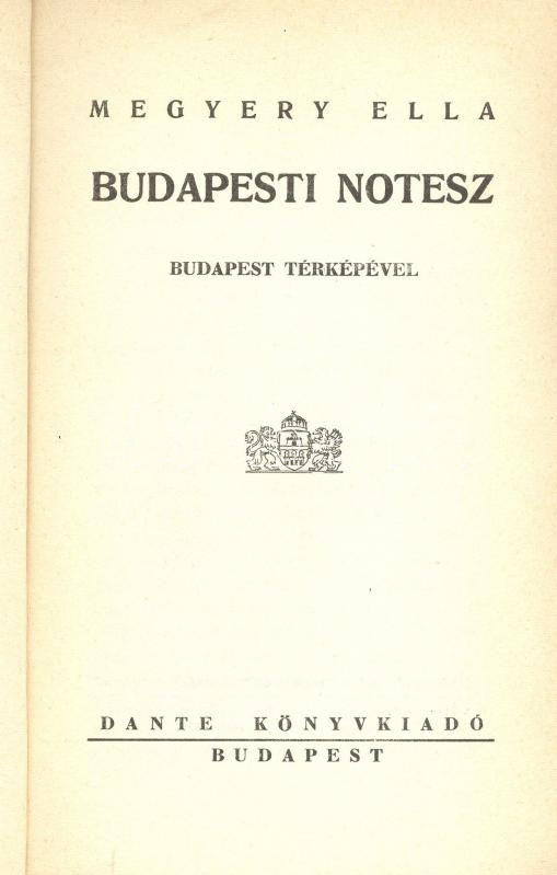 Megyery Ella: Budapesti Notesz Budapest térképpel. Dante Könyvkiadó, Budapest. Megviselt állapotban, 415p.