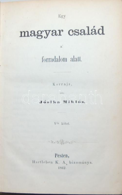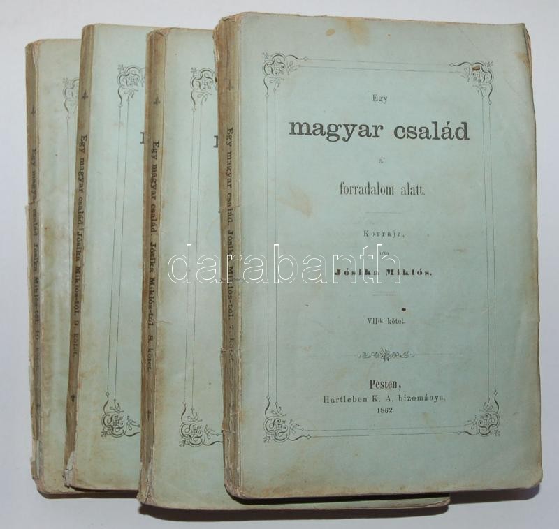 Jósika Miklós: Egy magyar család a forradalom alatt. Korrajz. 1-10 kötet. (hétbe kötve) Első kiadás. Braunschweig-Pest, 1852-1862. Mayer-Hartleben. 191 l. 202 l. 195 l. 220 l. 233 l. 235 l. 217 l. 189 l. 168 l. 183 l. Papír és félvászon kötésekben.