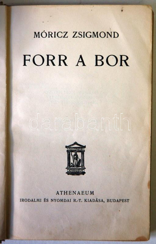 Móricz Zsigmond: Forr a bor. Első kiadás! Bp., 1931. Athenaeum. Kopott... https://www.darabanth.com/de/168-Fernauktion/168.0/Andere-Sammelgebiete/Bucher-Sonstige-Raritaten~500040/Moricz-Zsigmond-Forr-a-bor-Elso-kiadas-Bp-1931-Athenaeum-Kopott-egeszvaszon-kotesben~II546391