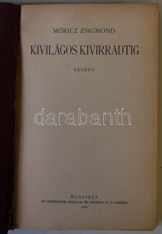 Móricz Zsigmond. Kivilágos kivirradtig, Első kiadás! Bp., 1926 Athenae... https://www.darabanth.com/de/168-Fernauktion/168.0/Andere-Sammelgebiete/Bucher-Sonstige-Raritaten~500040/Moricz-Zsigmond-Kivilagos-kivirradtig-Elso-kiadas-Bp-1926-Athenaeum-aranyozott-vaszonkot~II546200